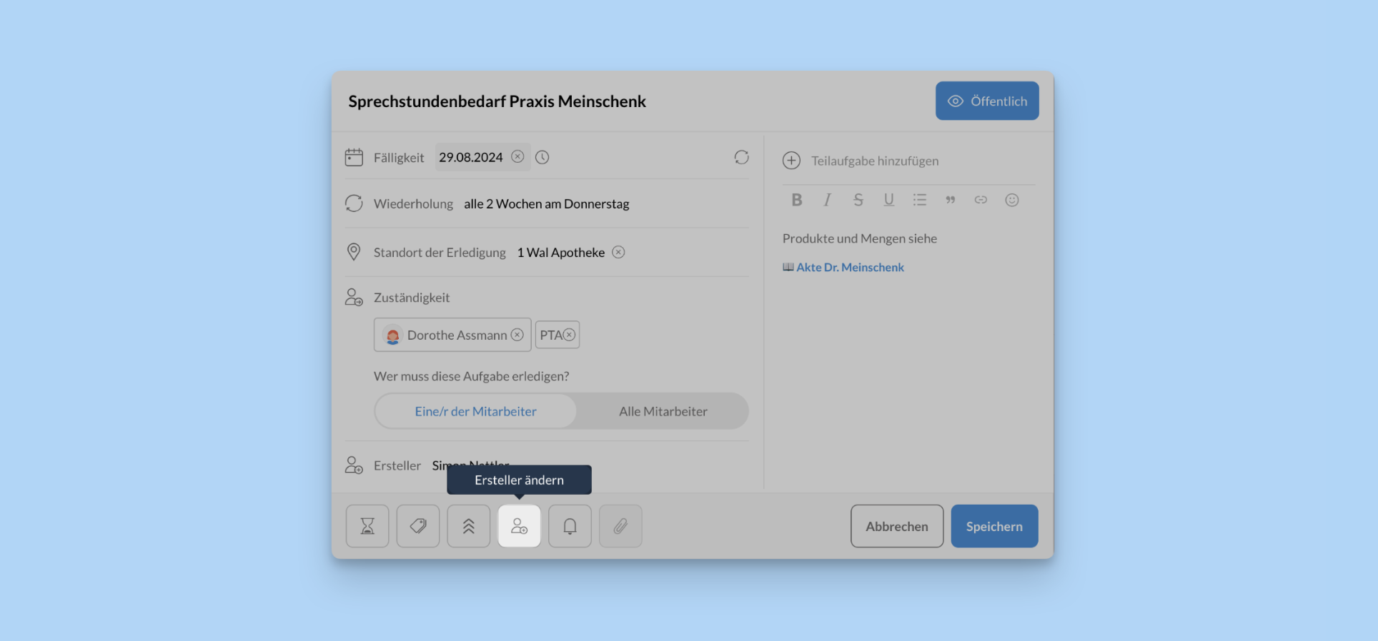 Ersteller einer Aufgabe ändern