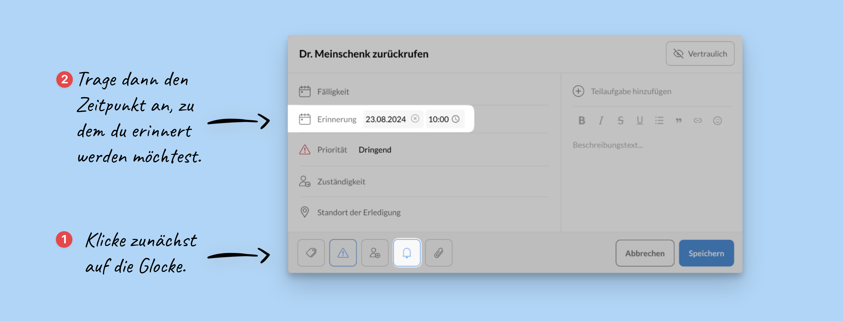 Klickt beim Erstellen einer Aufgabe das Glocken-Icon an.