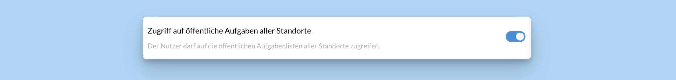 Schalte im Abschnitt „Aufgaben“ die Berechtigung „Zugriff auf öffentliche Aufgaben aller Standorte“ an oder aus.