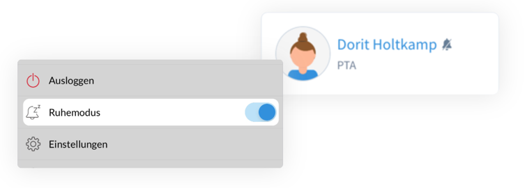 Übrigens: Andere Mitarbeiter sehen neben eurem Namen den Hinweis, dass ihr aktuell im Ruhemodus seid und die Nachrichten wahrscheinlich nicht lesen werdet.