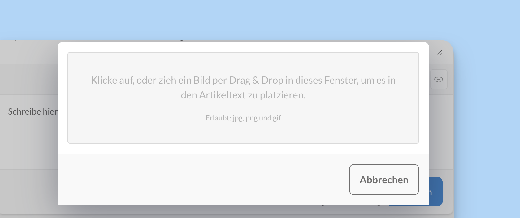 8 | Bild einfügen | Fügt ein Bild direkt in den Artikeltext ein |