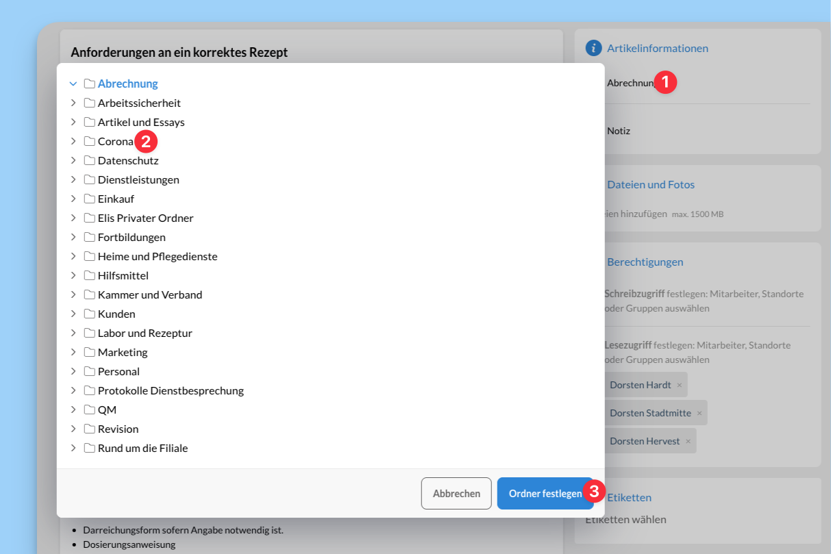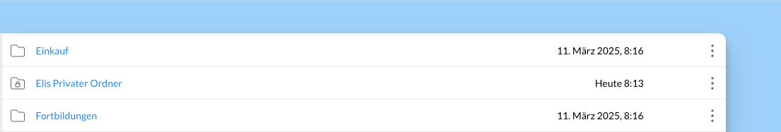 Ihr könnt Ordner erstellen, die nur ihr im Index seht. Mit privaten Ordnern verwaltet jeder seine persönlichen Artikel. Andere Mitarbeiter können diese Ordner nicht sehen.