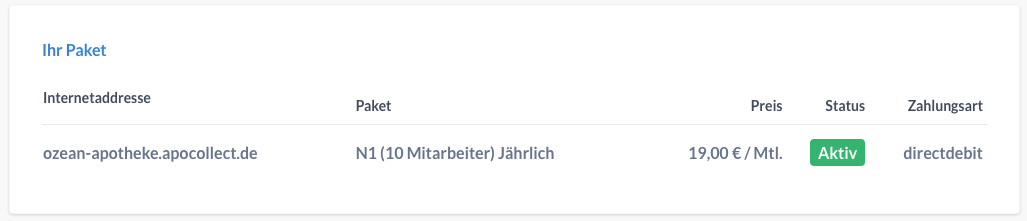 In der Übersicht siehst du auf einen Blick Angaben zu deinem Paket.