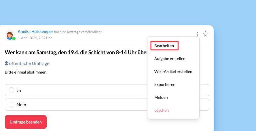 📊 Das Erstellen von Umfragen haben wir in diesem Artikel genau beschrieben: Mehr Infos >