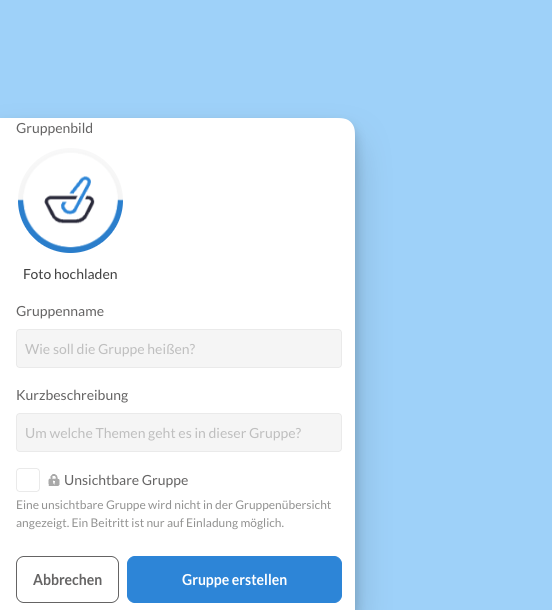 Gruppenart: Gruppen sind im Normalfall für alle sichtbar. Wenn ihr eine "geheime" Gruppe erstellen wollt, wählt "unsichtbare Gruppe" aus. Die Gruppe ist dann nur sichtbar für alle, die ihr einladet.