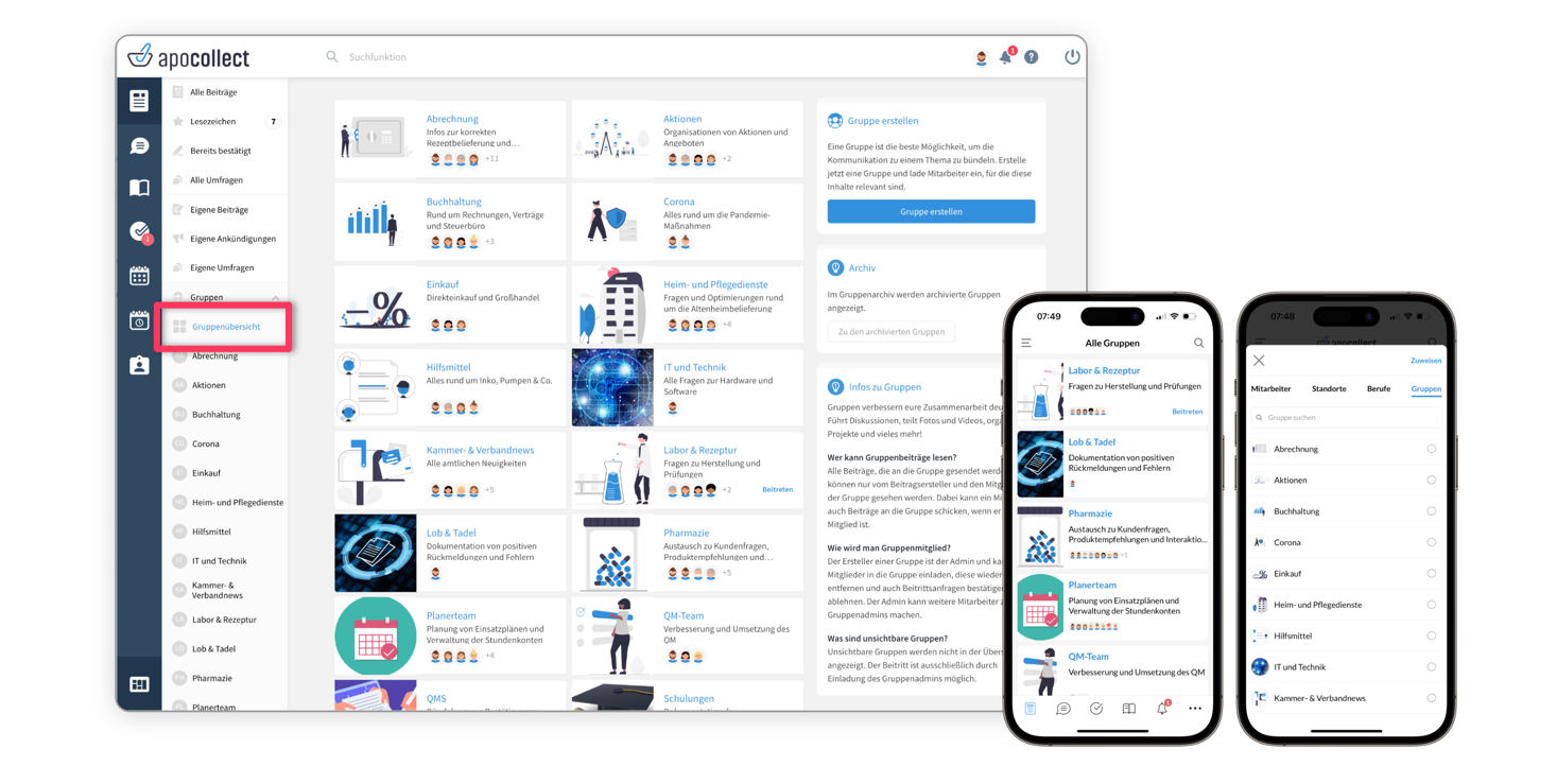 💡 [PDF] Zum Start mit apocollect habt ihr von uns einen Leitfaden zu den Gruppen erhalten mit vielen Praxisbeispielen, wie Apotheken diese einsetzen. Wenn ihr diesen Leitfaden nicht mehr zur Hand habt, schreibt uns gerne eine Email.