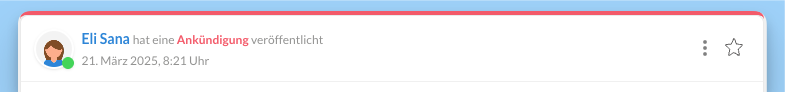 Eine Ankündigung, die noch nicht von Empfänger bestätigt wurde, kann über das Drei-Punkte-Menü in der Titelleiste des Beitrages bearbeitet werden.