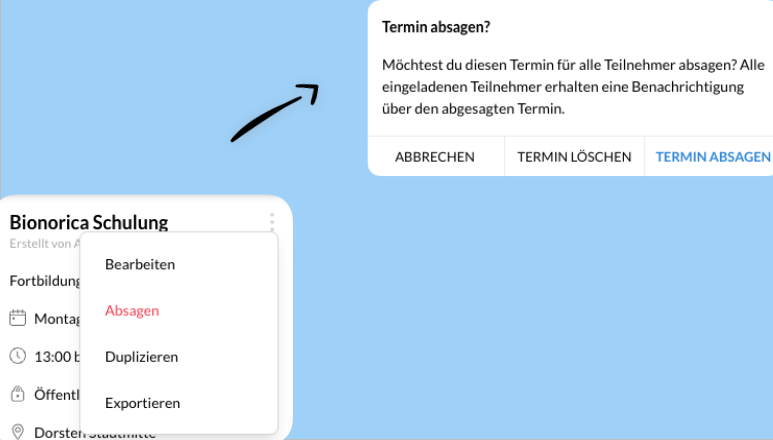Termin absagen oder löschen