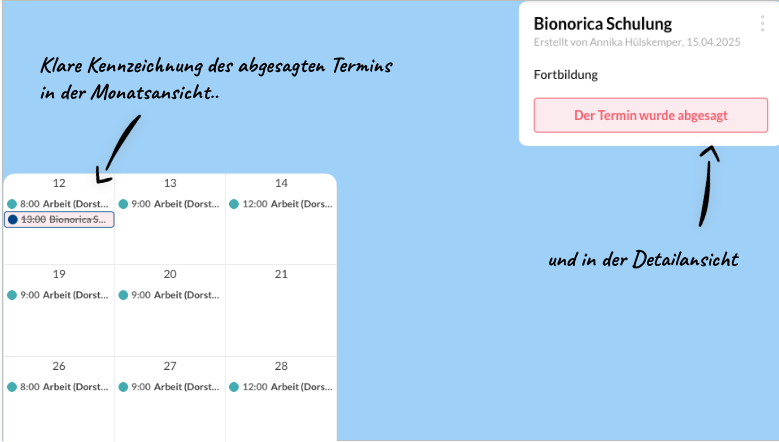 Wenn ihr daher einen geplanten Termin absagen müsst, könnt ihr das mit per Knopfdruck tun.