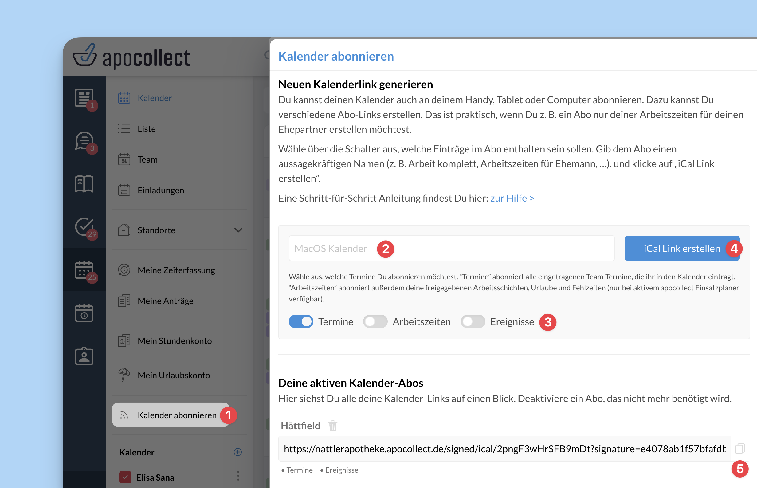 💡 Ihr könnt auch mehrere verschiedene Abo-Links generieren. Dadurch könnt ihr eurer Familie z. B. auch einen Abo-Link nur zu eurem Arbeitszeiten geben, damit euer Mann oder eure Frau weiß, wann ihr arbeiten müsst.