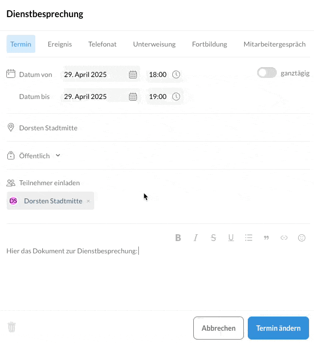 Schreibt im Beschreibungstext des Termin das @ Zeichen.