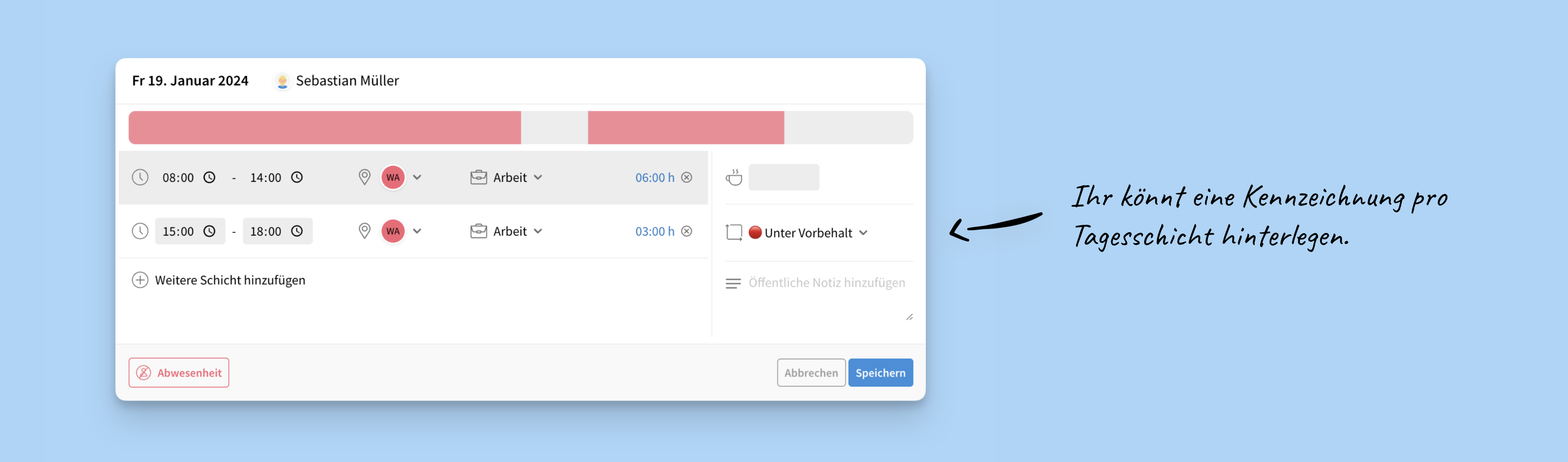 Jeder Tagesschicht kann eine eigene Kennzeichnung zugewiesen werden.