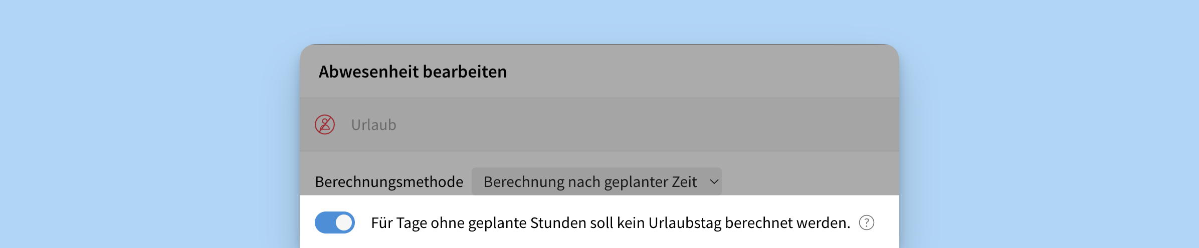 Nach der Auswahl der passenden Berechnungsmethode steht nun fest, welchen Stundenwert ein Mitarbeiter an einem Urlaubstag erhält. Im 2. Schritt legt ihr nun noch fest, WANN der Mitarbeiter überhaupt einen Urlaubstag nehmen muss.
