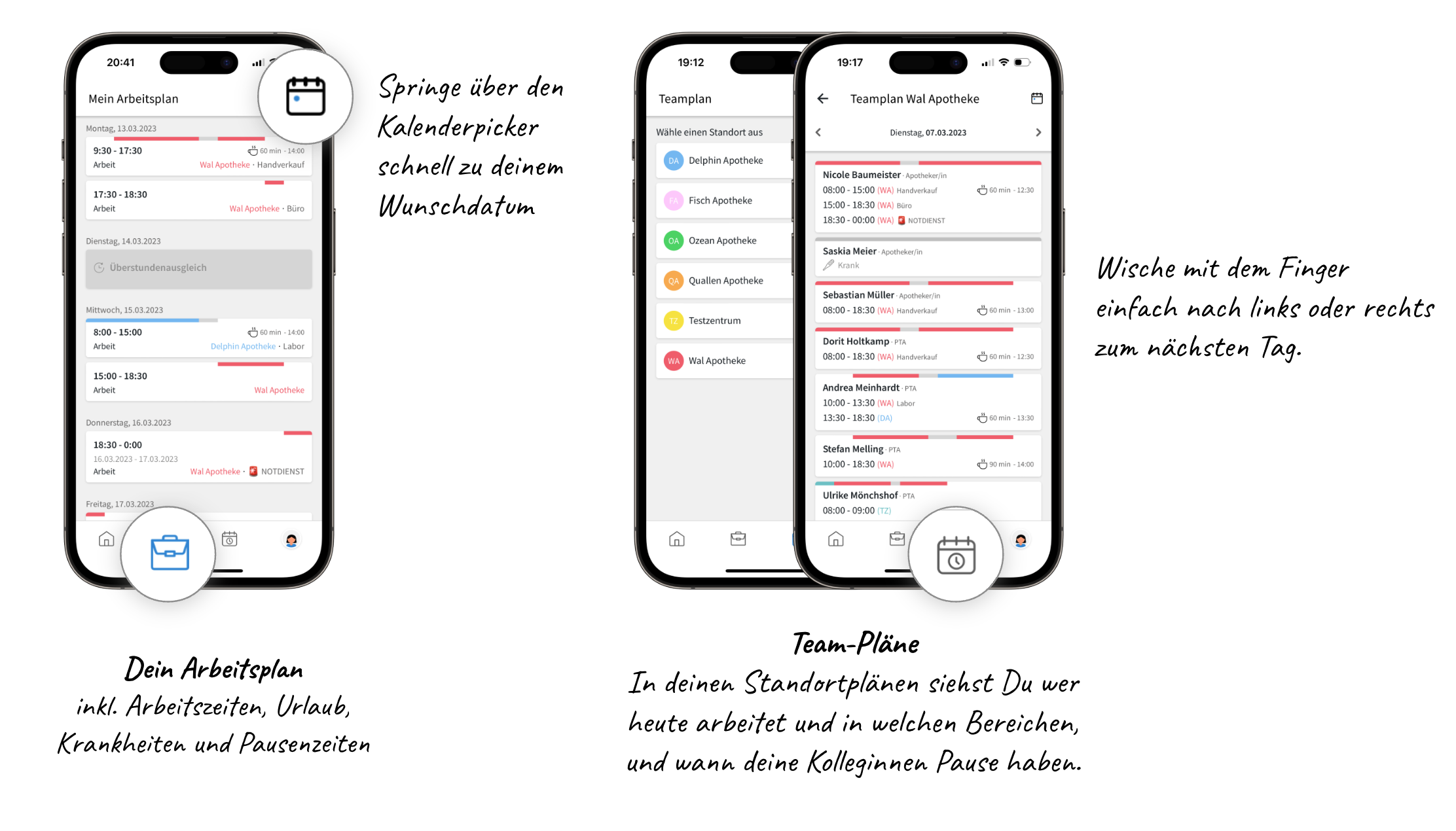Ansicht der Arbeitspläne für Mitarbeiter (App + Browser)