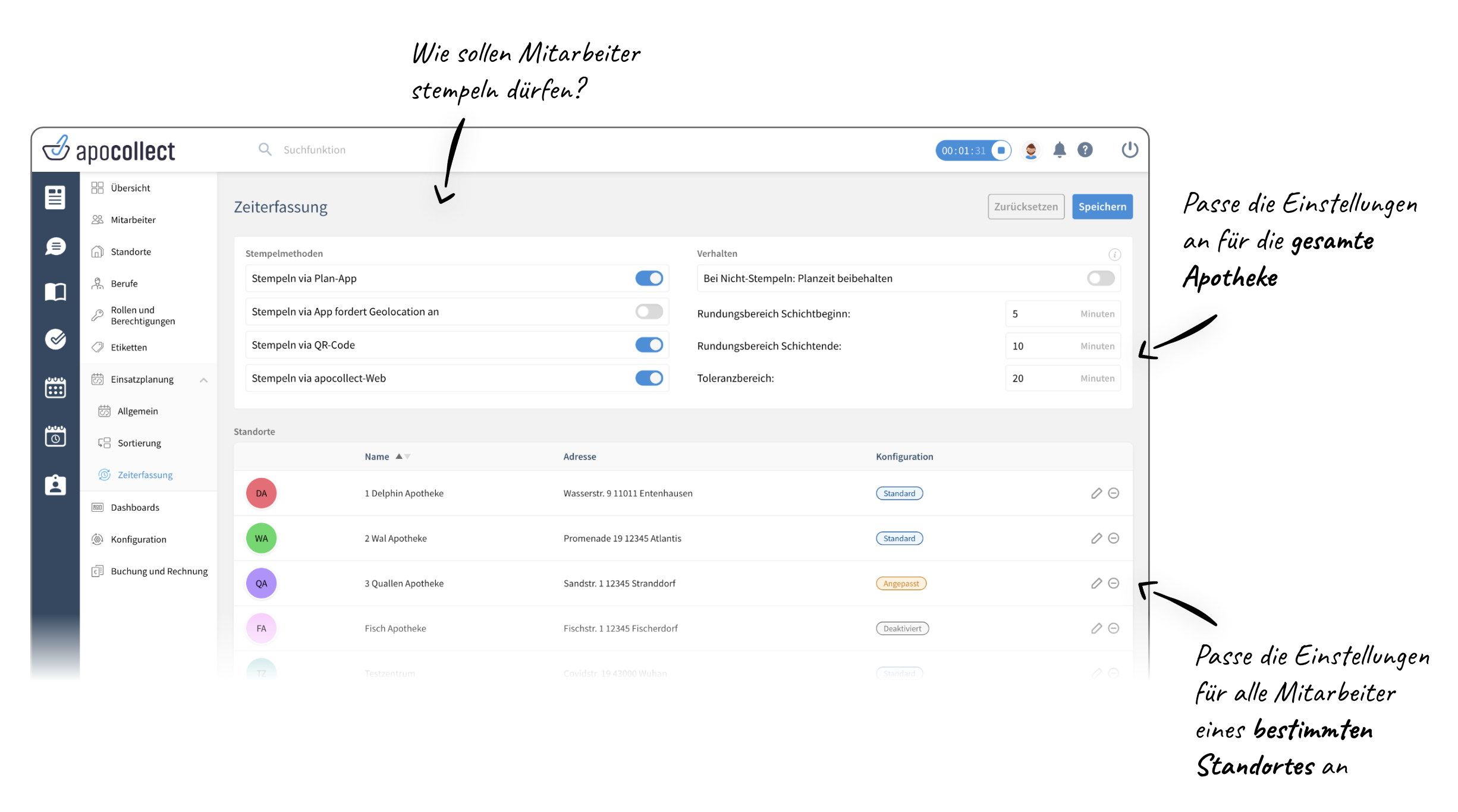 Mit der automatischen Zeiterfassung können Apotheken, die ihr Team nicht stempeln lassen möchten, ebenfalls eine exakte Dokumentation der tatsächlich geleisteten Arbeitszeiten erreichen.