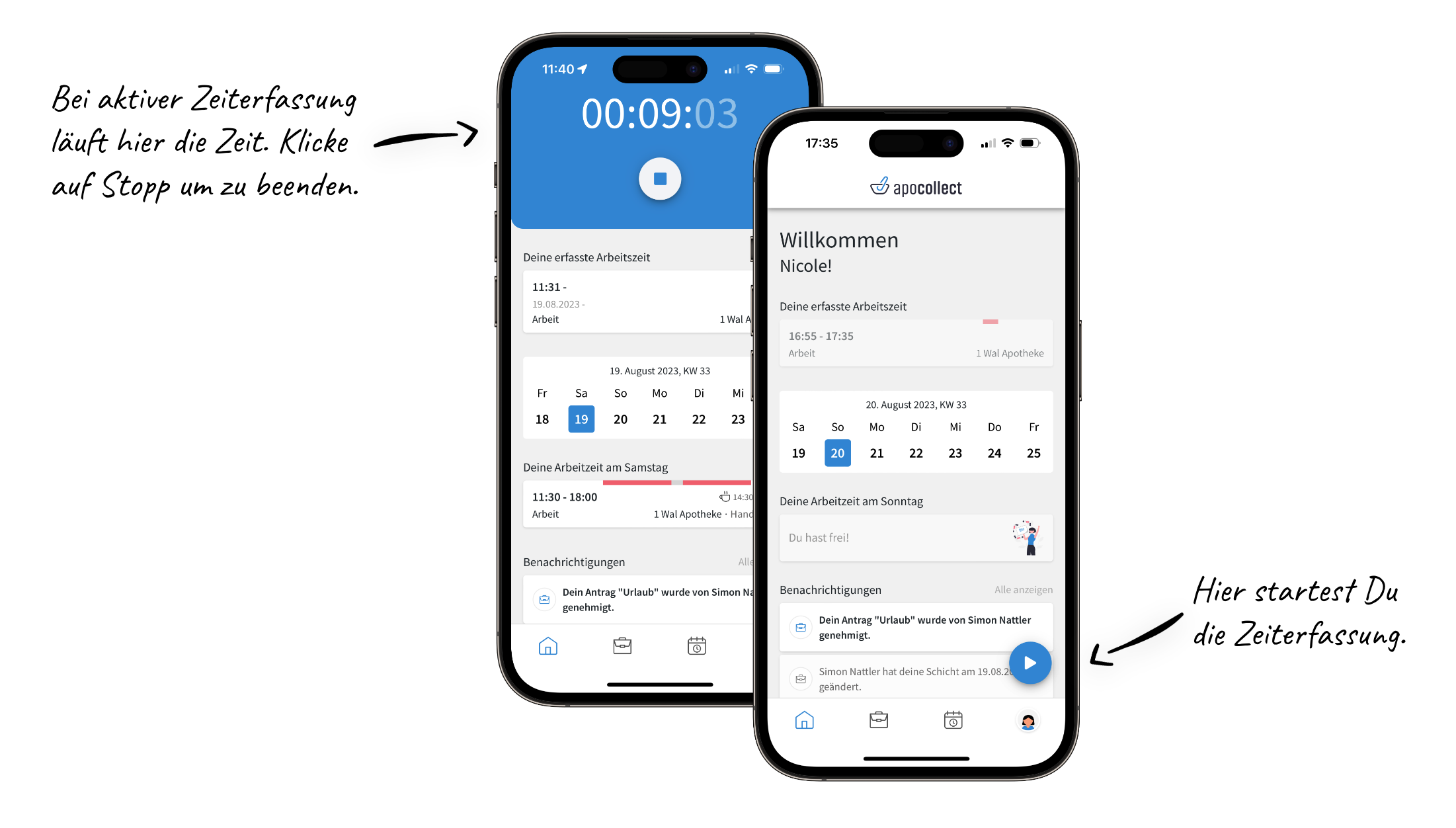 Dadurch kann z. B. verhindert werden, dass alle Mitarbeiter gleichzeitig morgens um 8:00 Uhr einstempeln müssen. Ihr könnt in dem Fall dann beim Betreten der Apotheke einstempeln und werdet automatisch eingestempelt, wenn die geplante Schicht beginnt.