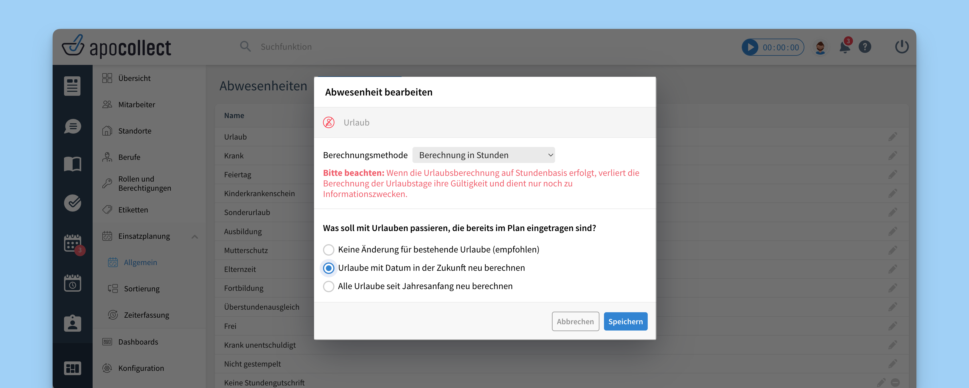 Urlaube, die ihr ab jetzt eintragt, werden mit der gewählten Methode berechnet.
