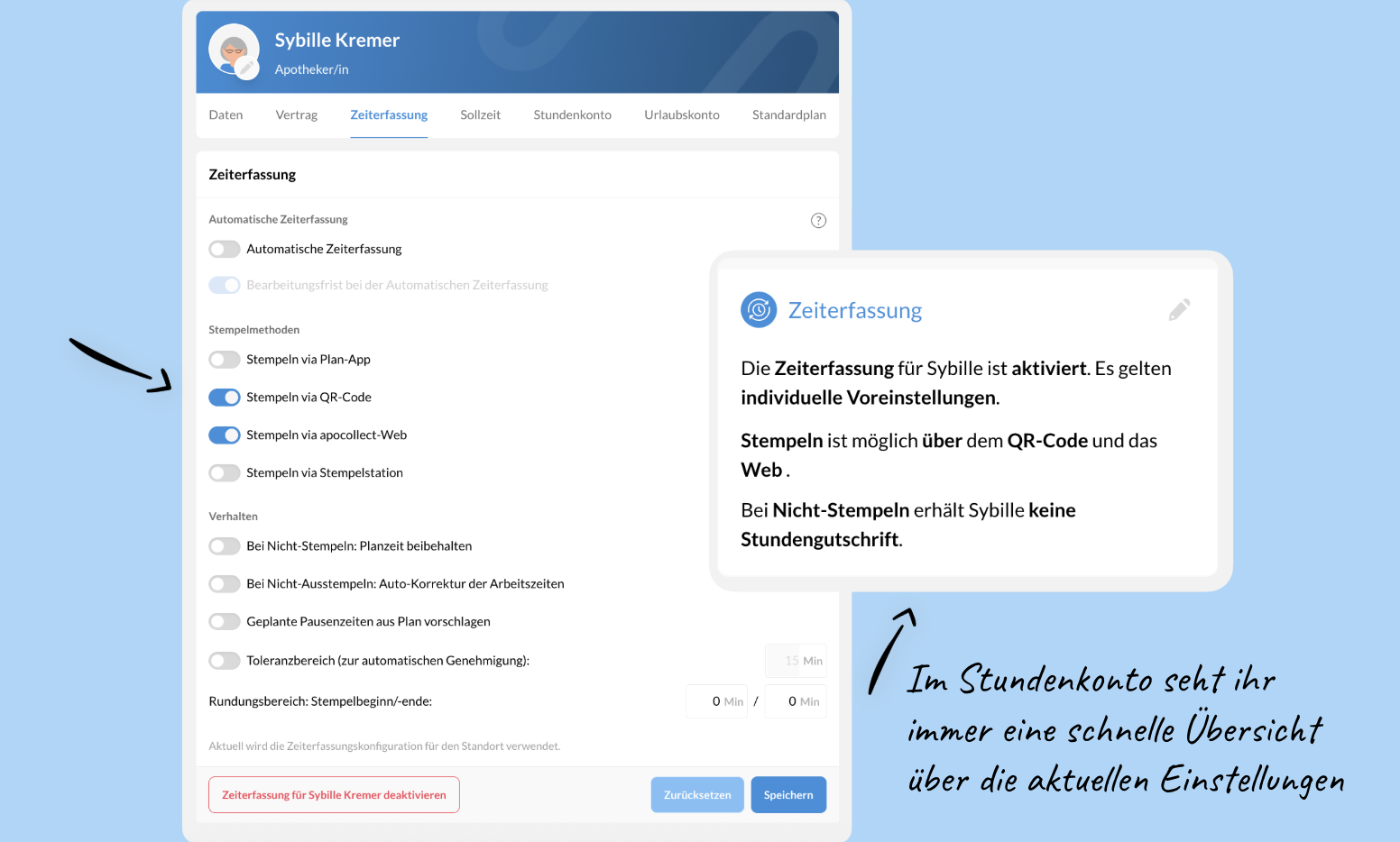 Das Stempeln per QR-Code kann flexibel freigeschaltet werden – entweder: