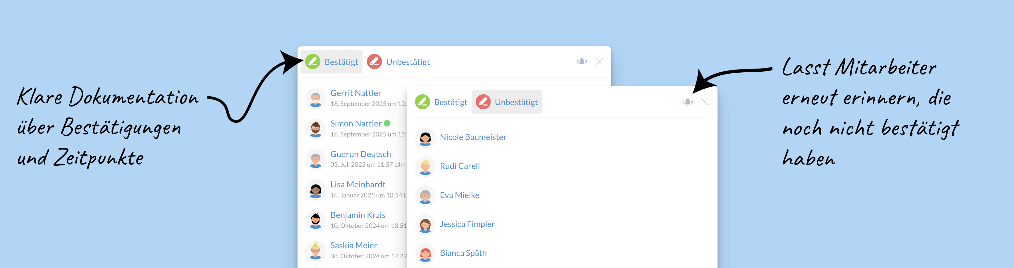 So wird sichergestellt, dass alle Mitarbeiter denselben Informationsstand haben und rechtlich relevante Themen zuverlässig bestätigt werden.
